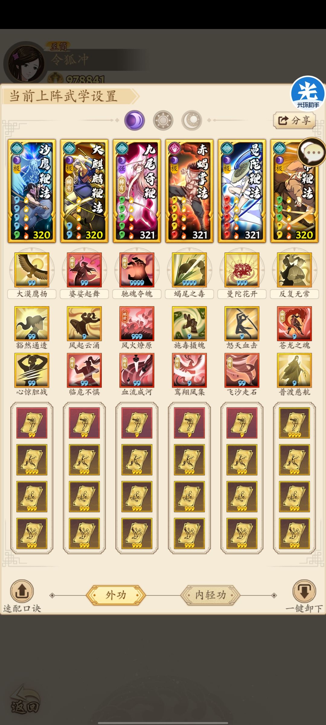 落雁扇法上的招式可以自由尝试,上豁然通透同时给无常鞭上个出手也是不错的选择,但在面对调和奇时胜率有所下降。