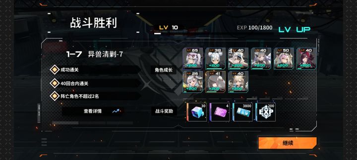 练度ps:通关截图上可以看到我通关用的人物等级。斯卡蒂是满r。就王女身上带了两个攻击核心,别的都没有核心。
