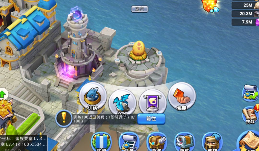 在基础篇提及到龙穴是主堡18级解锁的建筑,在龙穴里可以训练龙族部队,龙可以跟随部队出征或者驻守,龙是制霸前中期的强力单位,在后期战斗里也担任主力输出。龙穴里有4个功能:训练,驻守,光环,赏赐;