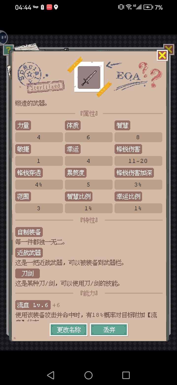 大佬们教一下撒实验室解锁电脑的手机去哪里弄?有时候探索事件开门提示需要撬棍和另一个工具砸门,但我不晓得另一个工具是啥,包里铁锤斧头都不能用,请问要用啥砸门?血量怎么提升,我快30级了血量还不到160,打藏身图BOSS简单难度血量都2000多了。妖刀现在是不是削得还没普通武器好用了?击杀数快两百了,属性还没自己打铁造出来的武器高,对比下拍卖行买的武士刀更垃圾得没法看。要不要放弃妖刀?