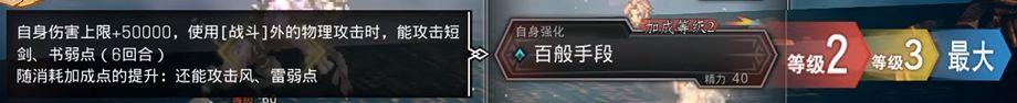 自身伤害上限+50000,使用【战斗】外的物理攻击时,能攻击短剑弱点(6回合)