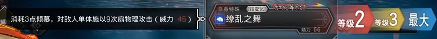 消耗3点倾慕,对敌人单体施以9次扇物理攻击(威力35)
