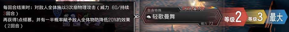 再获得1点倾慕,并有一半概率赋予敌人全体物防降低20%的效果(2回合)