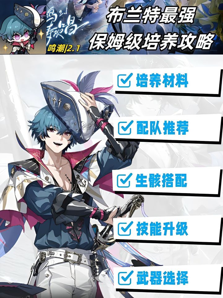本期带来2.1版本新角色“布兰特”超全培养攻略,专武选择、技能加点、声骸搭配、强势配队全都有,保姆级教学包你看懂!