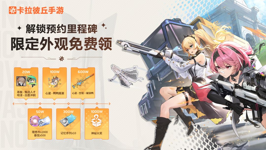 公测预约活动同步启动,各位引航者可前往《卡拉彼丘》手游官网进行预约。参与预约即可获得「心夏-鸭鸭摇滚」和「心夏-空境·破浪鸭」等奖励!