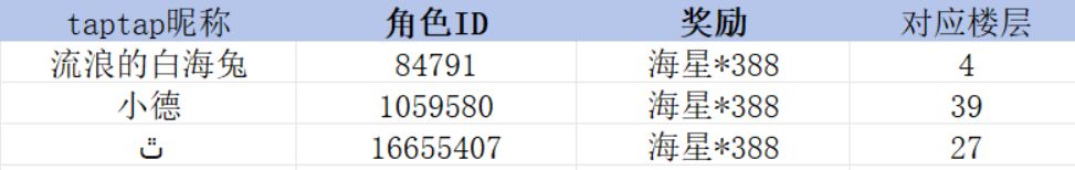 活动已结束,恭喜以下三位冒险者中奖!