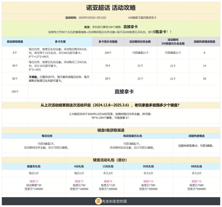 【活动攻略】获取诺亚超话卡需要多少键盘?