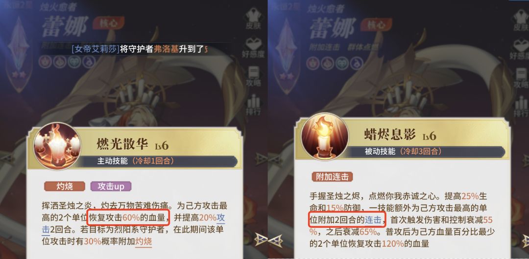 - 烈阳蕾娜:既能治疗又能附加连击;