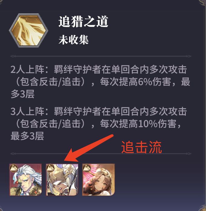 2.追猎之道(追击流):需汉诺克(控制)+阿莱莎(法师)+克莉斯多(召唤),侧重输出。