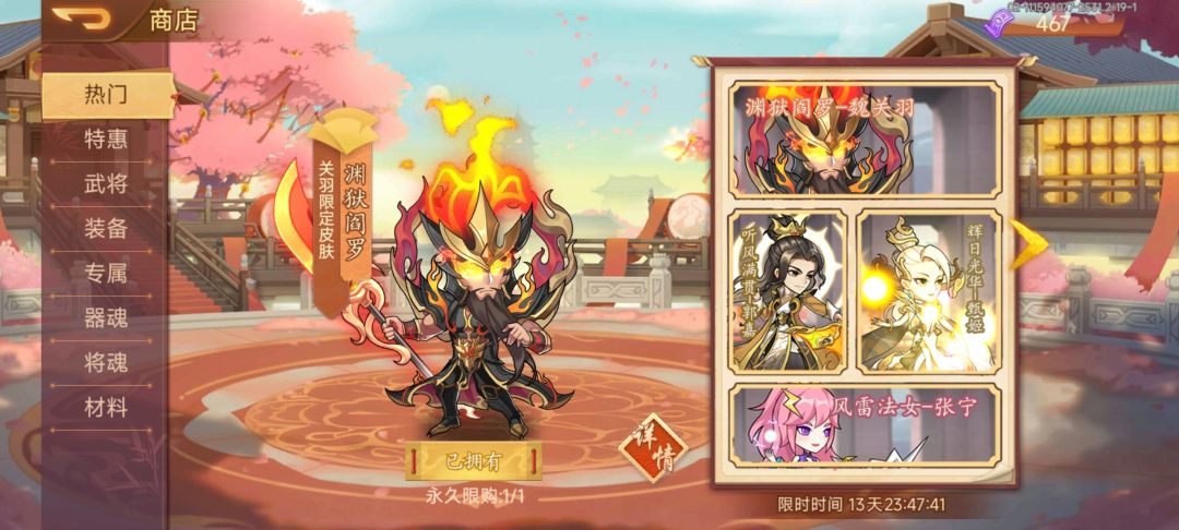 活动内容:关羽,郭嘉,甄姬,张宁限定皮肤商城热卖!