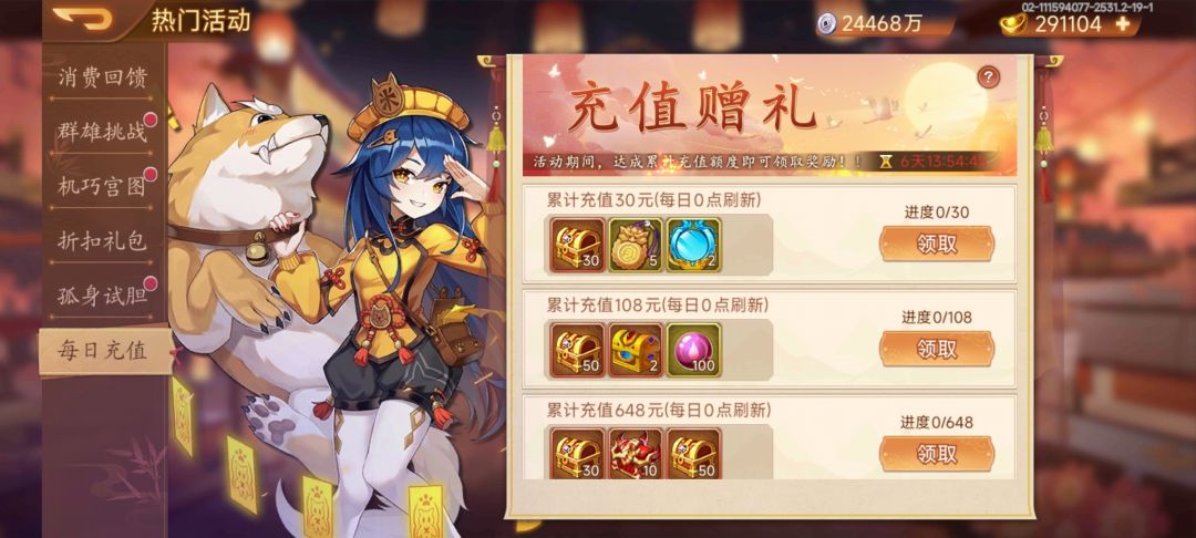 活动内容:活动期间,每日达成充值额度即可领取奖励!