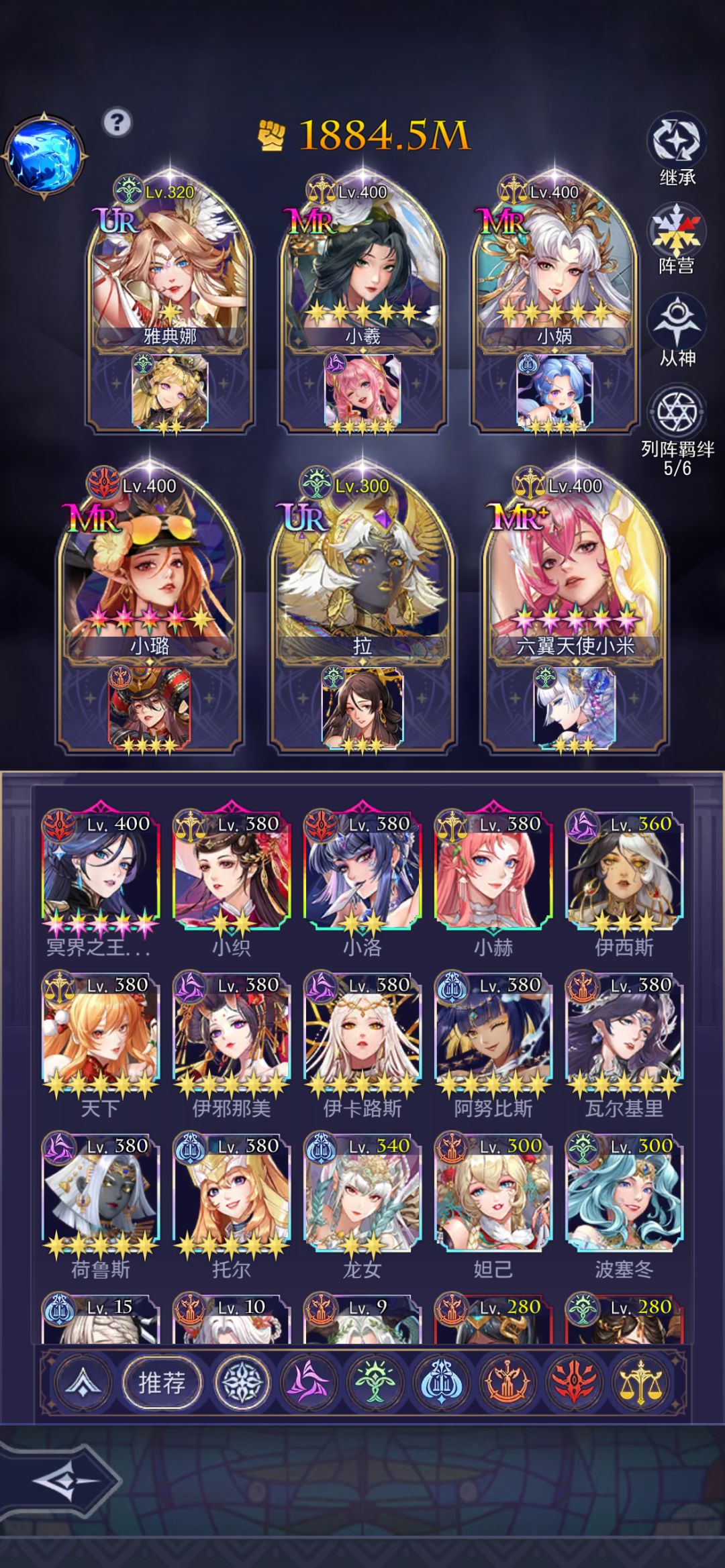 ·其实能发现这个阵容和上面的阵容很像,为什么呢?因为我希望抽到伊西斯的慢慢往哈迪斯方向转!伊西斯不得不说他是整个游戏过主线最快的人物,可以最早吃满主线副本资源!只需要ur5星mr0星就够用了!