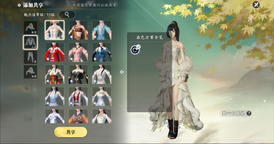 4. 共享时,除发型的焕彩染发方案以及发饰的普通染色和随心染色方案外,所有的染色方案都会被共享。