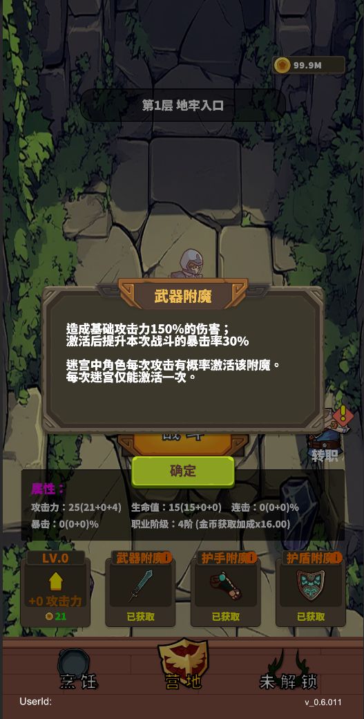 触发职业特点的方式:购买装备附魔,当购买所有装备附魔后,暴击王达到完全形态。