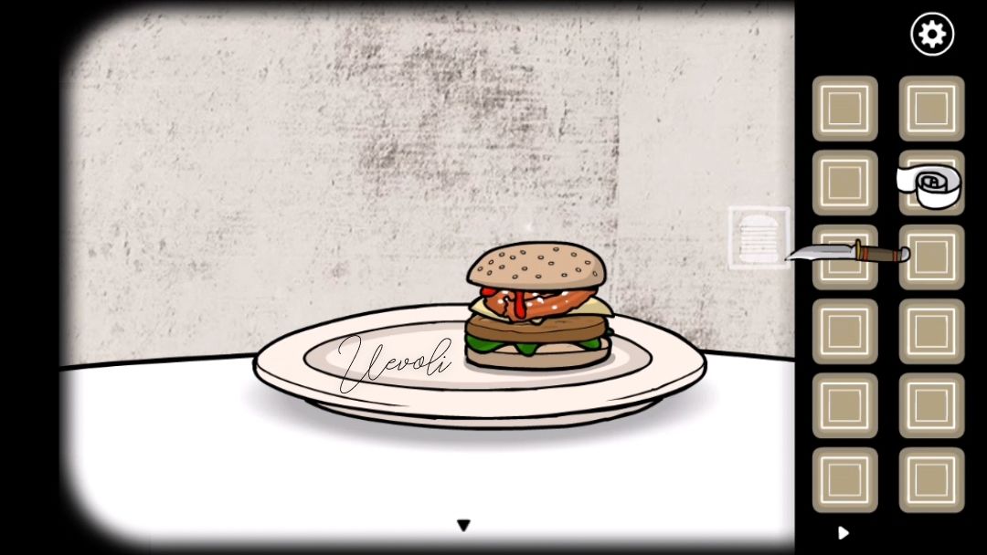 ◆回退场景后进入屋内,拾取[刀]。点击纸条可查看“锈湖汉堡”的教程,后续若根据该教程做汉堡,可解锁成就。