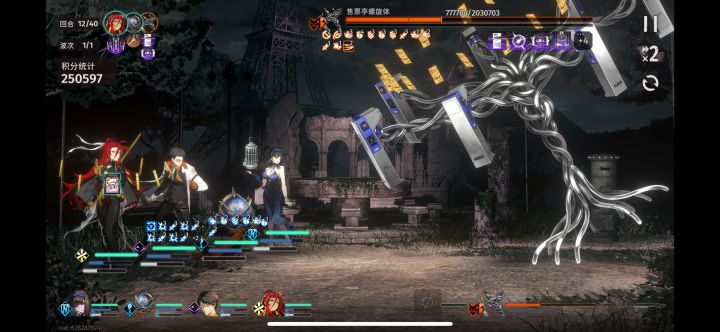 局长放一轮战术后接普攻上控制,无限循环,基本上永久2个控制,吧BOSS控的死死的,Boss效果抵抗降低buff快结束后楚衣放大招续debuff