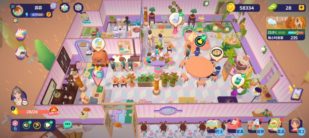 很多新手不知道怎么第一天21级,基本上俩个小时就可以到,外卖和宴会一定要看等级,做等级高的,低的就刷新。菜篮子真的很重要,平常接待客人也是给经验的。