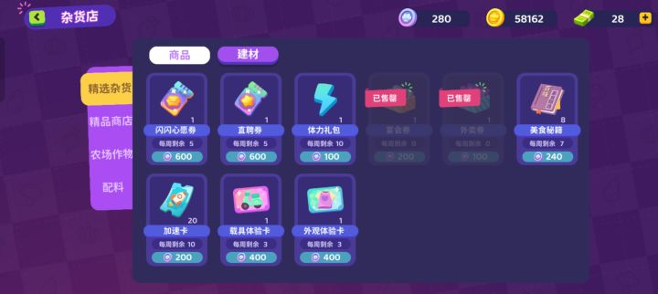 2.外卖和宴会每天都可以绿钞买俩次次数,一定要买,然后就是杂货店买次数。