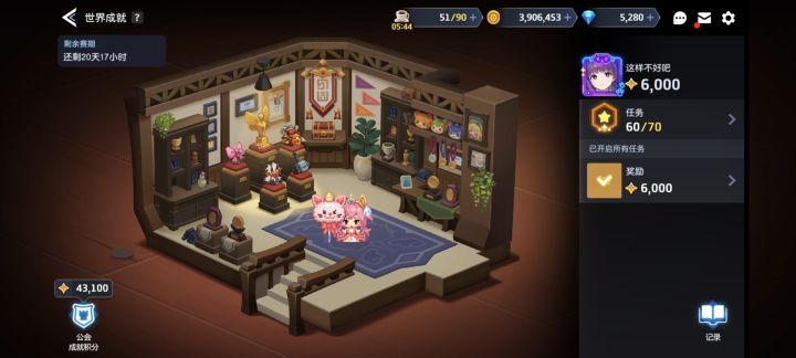 本次世界成就白送的分还是很多的,不过要拿满奖励就蛮难的,团远可以抱大佬大腿选坦选奶,PVP除了33打上不了一点,44和死斗都说得过去,忒提斯开很久了,该拿下的也都拿到了(不过今天开的第四批任务,得再去tts打一次才有记录),最难拿到的还得是地狱一的分,今晚凹了很久才拿到了300分,动用了蓝盈盈之力去买了15次觉醒副本次数才凑够6000分