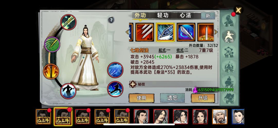 这游戏其实没什么玩法,很多数值都是假的,比如修为,同个英雄 3576 剑法和 1431 棍棒打出的伤害居然没多大差别。