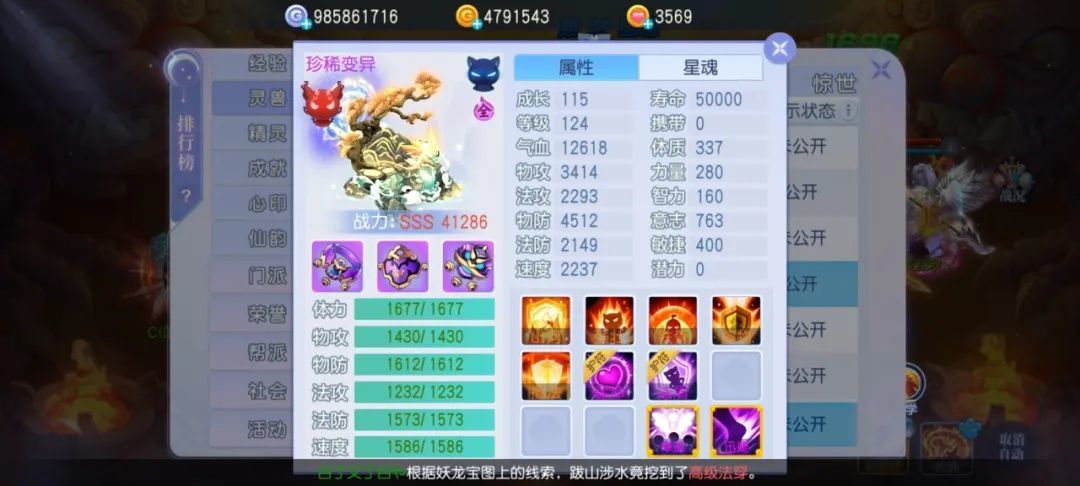 成长115全满,体力资质全满,物防资质全满,法防资质全满,速度资质全满!资质方面堪称完美!