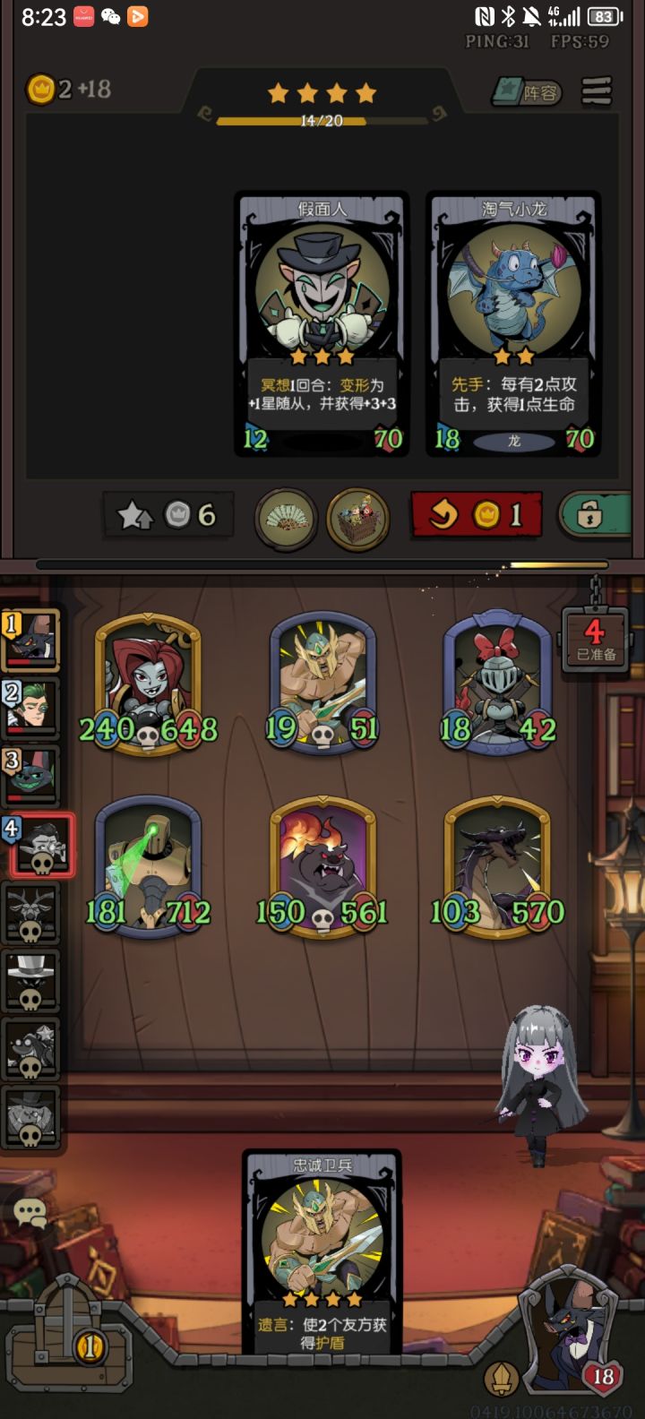 思路很简单,开局拿个机械,然后用技能一直刷机械就是了。升本升到四就行了,具体想怎么升都由你自己随机应变,我打到游戏结束都是四星。有加商店属性的卡就买,法术也这么选。然后珍宝首选折扇(一般你的场上摆满机械族应该会有的)如果没有就拿成长怀表然后扔给那个三星的机械成长的。高级珍宝选四星以下属性翻倍。接下来就是想买什么就买什么,什么阵营的都可以买,然后叠上附着。因为不用升本,所以钱随便花。