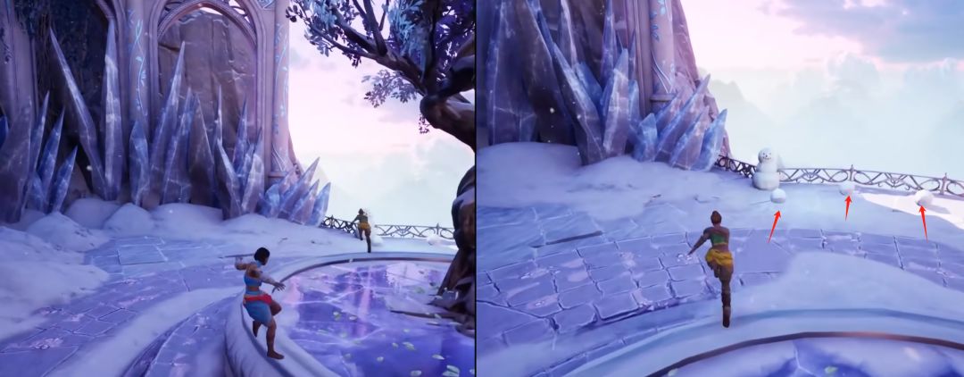 米欧使用猩猩形态把标记的这三个雪球都扔飞