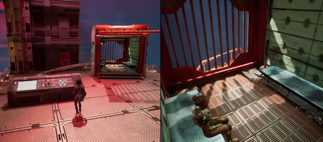当佐伊坐在监笼里时,米欧控制机器把门关了