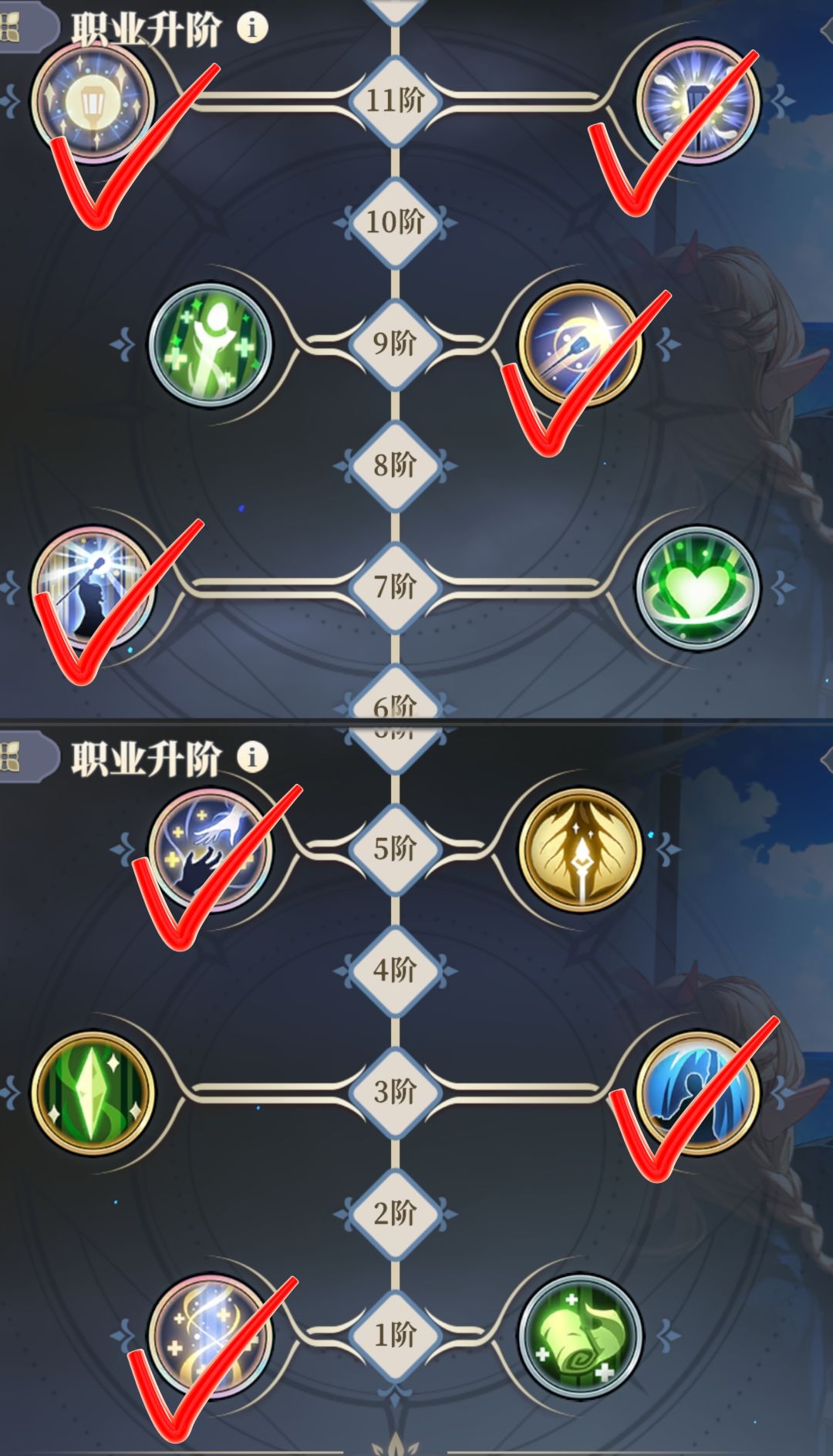 三阶:右丨比较纠结,法琳回能堪忧,对新手来说点左边更好,可以帮你度过前期。我推荐右边是因为老手不缺回能手段,而且右边+生命上限,特殊情况下需要用到范围减伤。从长远看,建议右边!