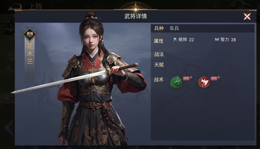 【属性】:统帅22,智力28