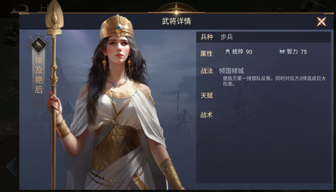 【战法】:倾国倾城,使敌方第一排部队反叛,同时对后三排造成巨大伤害