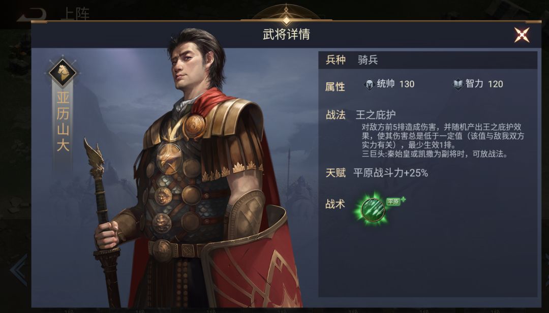 【属性】:统帅130,智力120