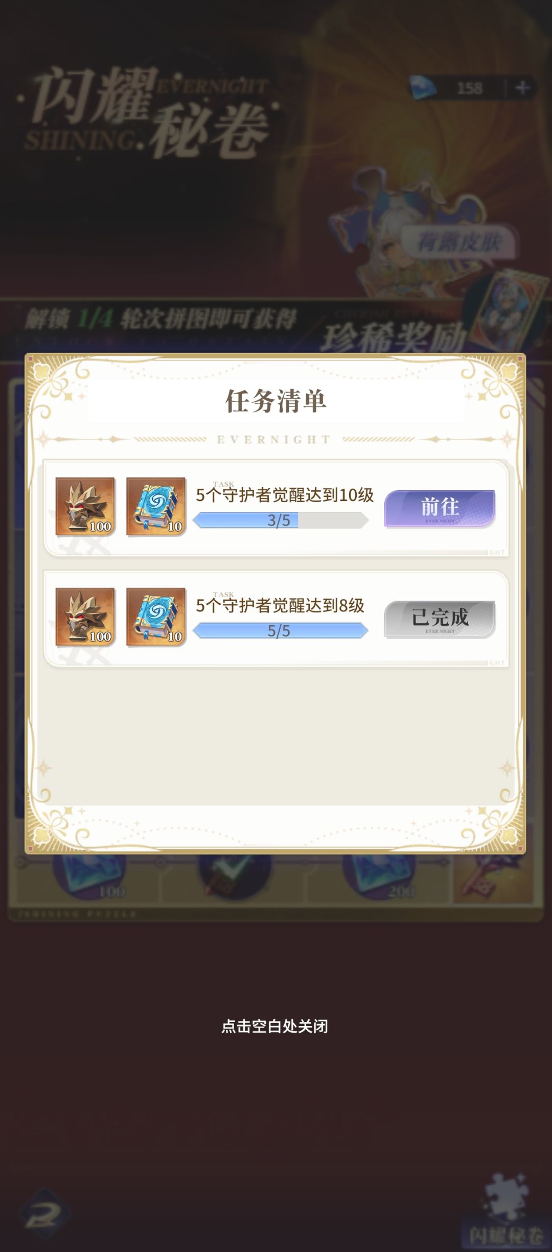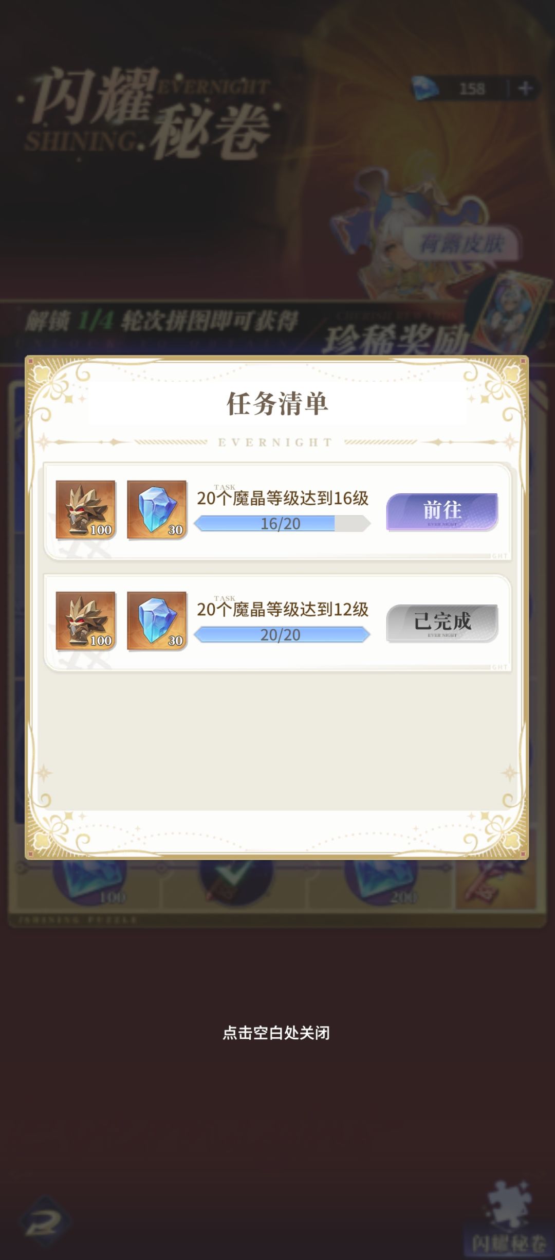 6.第六天开闪耀池子,累计任务里面有觉醒等级和魔晶等级,记得均升,钥匙囤着;