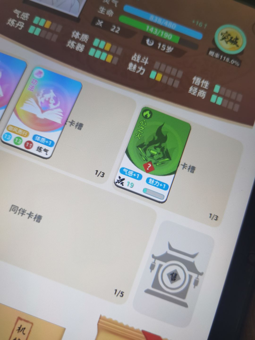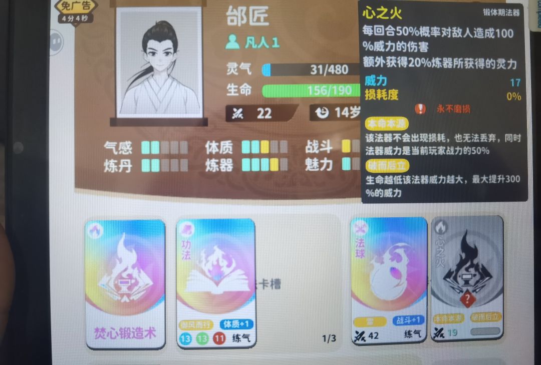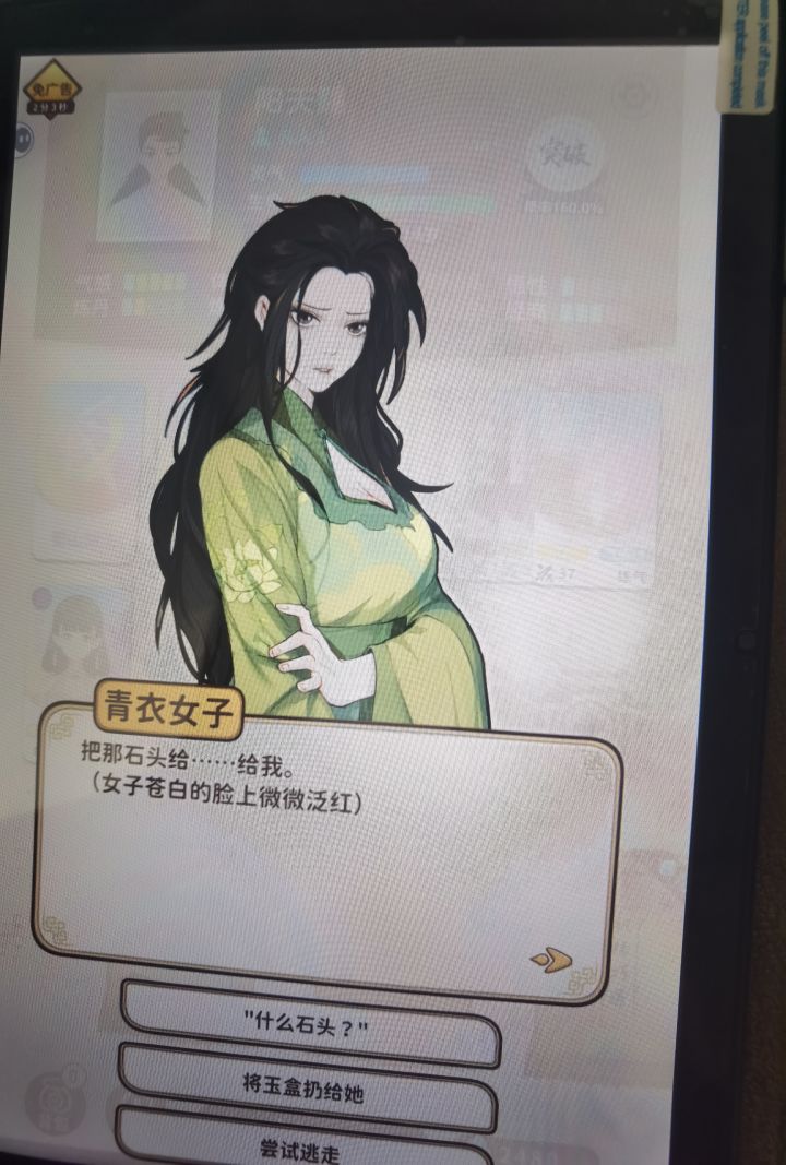 刷到这个红色标志的就可以碰到这个新的角色,然后点第一条信息两次,随后把盒子给她换七星草就可以,第二次刷到他就会跟随在你的同伴卡槽里,给他一个彩色的灵石就可以了,第三次刷到她之后会给你一个法球,因为他要飞升了,到这一步就可以获得新开的技能,会自动占一个法器位置,靠吞噬别的法器升级