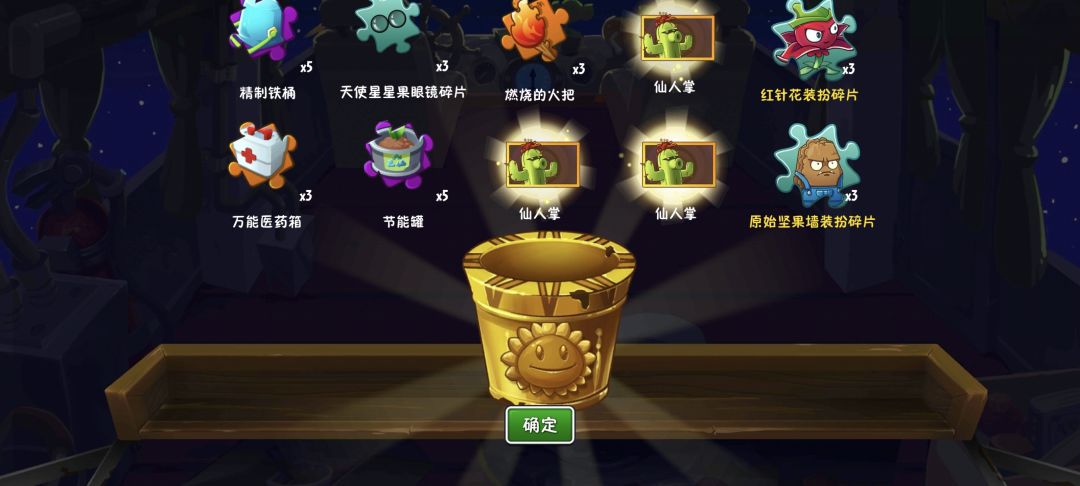 关于新手宝库抽选选择:仙人掌(仙人掌新手送到二阶,七天任务送一本二到四阶免费升级一阶书,宝库抽到五个仙人掌升到三阶直接用书到四阶),送得几十张卡不太非都能出。四阶仙人掌配合送的扮装六阶以下关卡基本乱杀,配合四阶原始向日葵摔炮