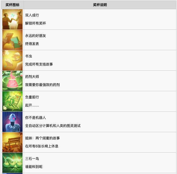 《双影奇境》全奖杯列表一览