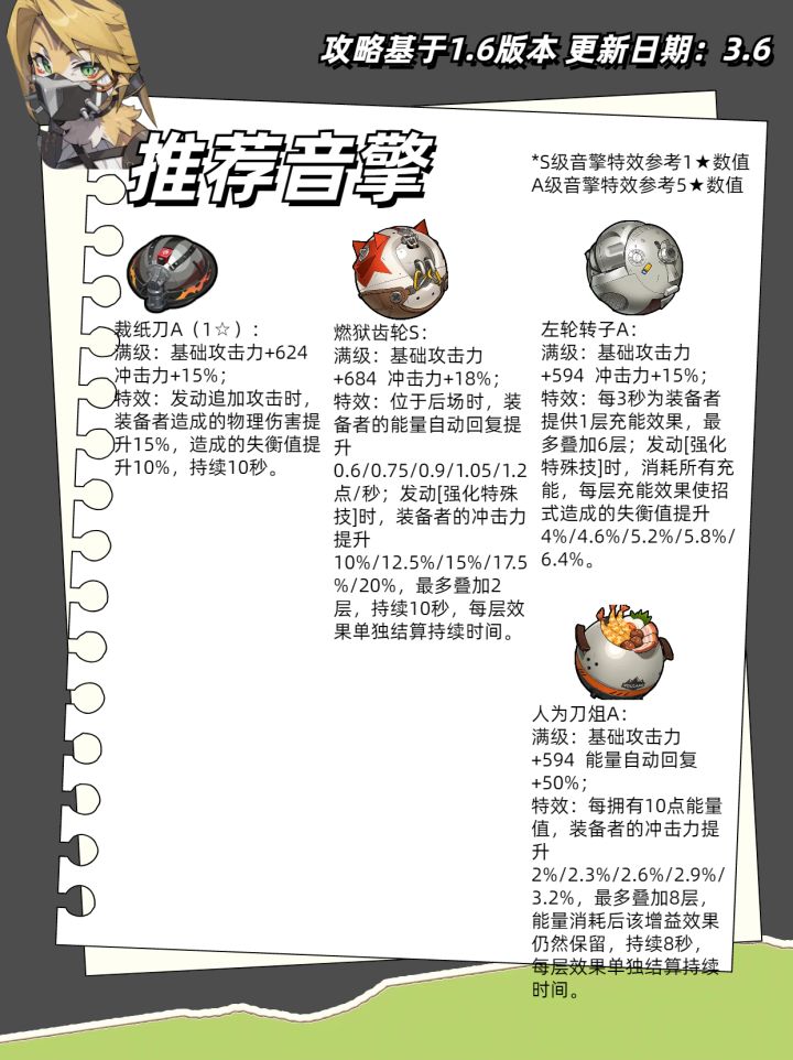 [*]配装方面,音擎选择上,专武裁纸刀最为契合。需高升阶。