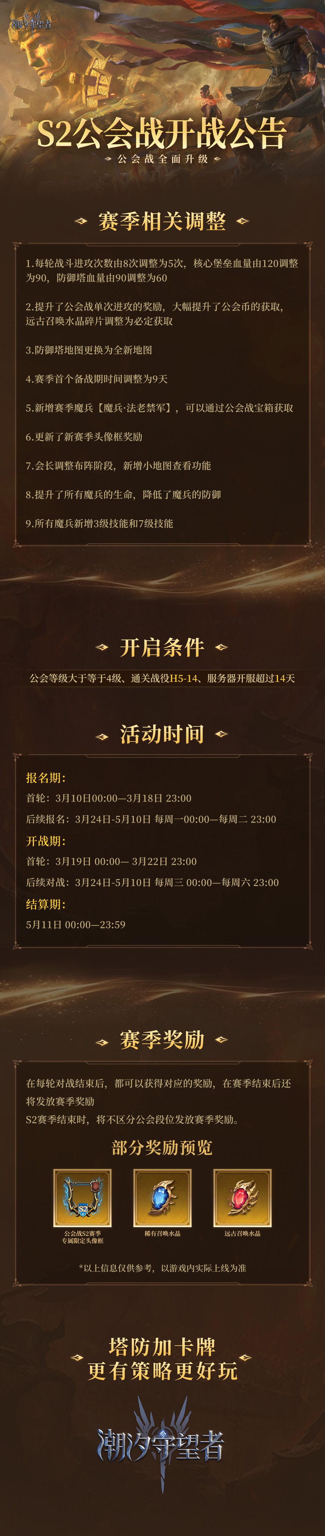2.提升了公会战单次进攻的奖励,大幅提升了公会币的获取,远古召唤水晶碎片调整为必定获取