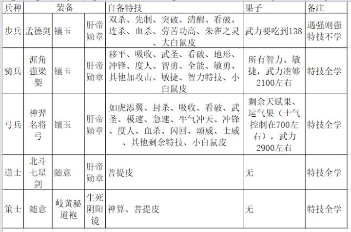1.每个兵种都是打三轮休闲模式,学9个技能,个别不学的看图,步兵实际只有8个技能可学,步兵遇强则强,被攻击一次加20血,有3000上限,固守3吸血吸不回,容错率低,没必要学