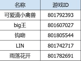 恭喜以下玩家获得本次活动奖励,奖励会在7个工作日内发到中奖id游戏内的邮箱中,请中奖玩家关注邮箱消息,及时领取。未中奖玩家,可以关注后续社区活动积极参与,同样有中奖机会呢~