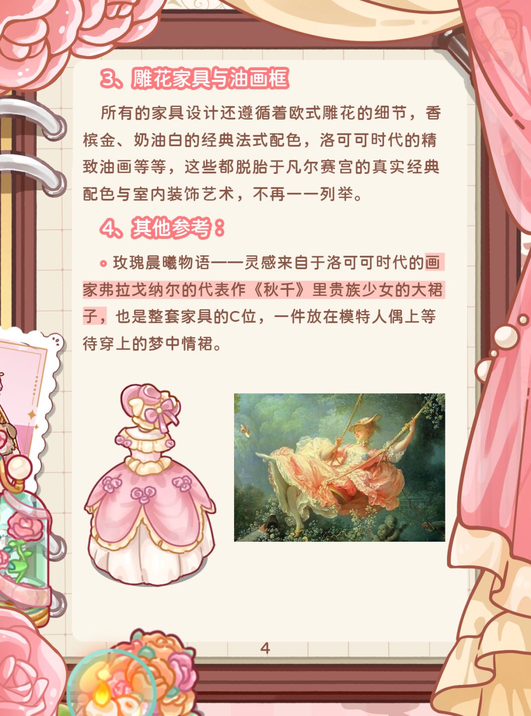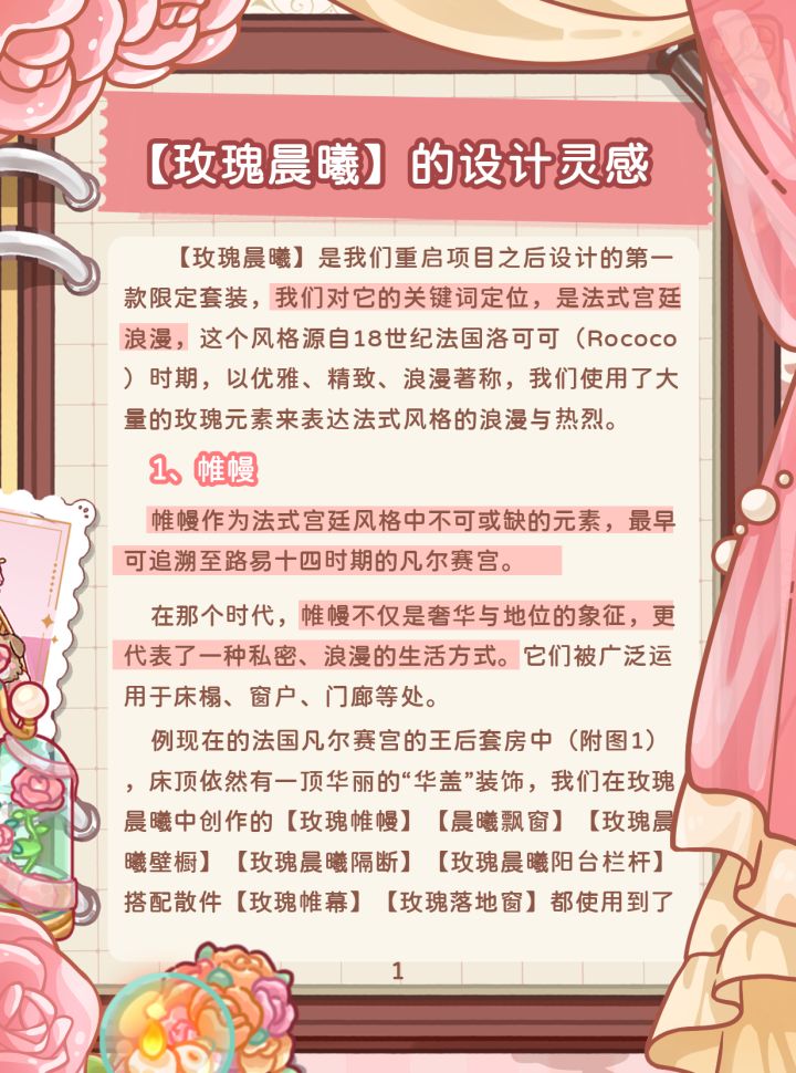 【玫瑰晨曦】是我们项目重启后的第一套限定套装,倾注了很多心血,设计师小姐姐为了做得更有“法式味”,连面包都吃法式小面包(bushi),没日没夜地找参考,每次画完一个风格,都感觉自己学到了很多~