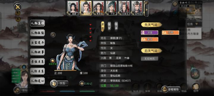 2.道种:刚化形是没有道种也不是天骄,可以在左下角点登仙后期、在点图整中间的莲花、选择对应人即可传道。