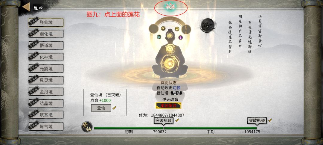 3.如何恢复道种:可通过论道、双修加快回复速度(具体看个人时间)可点击莲花查询恢复进度。
