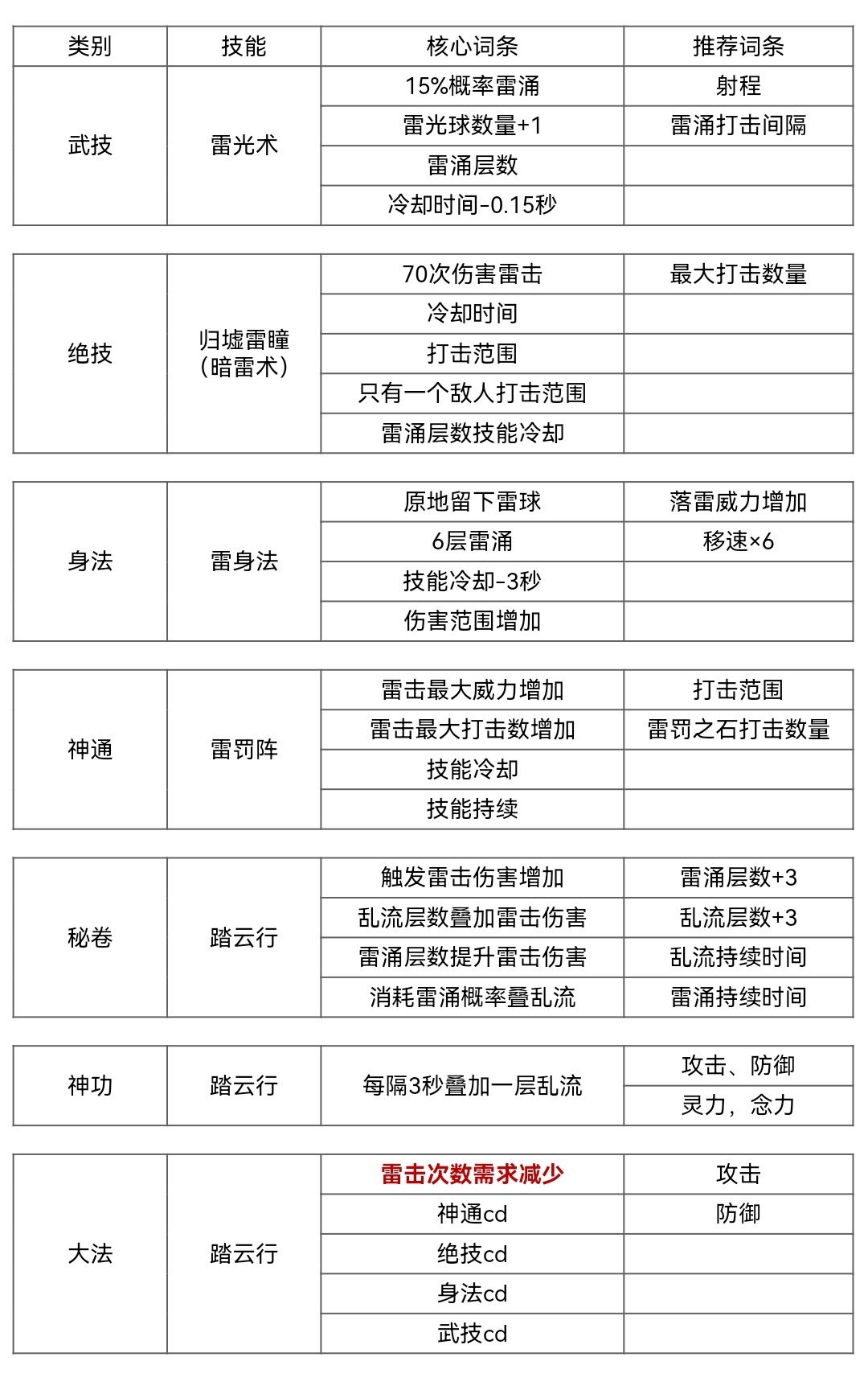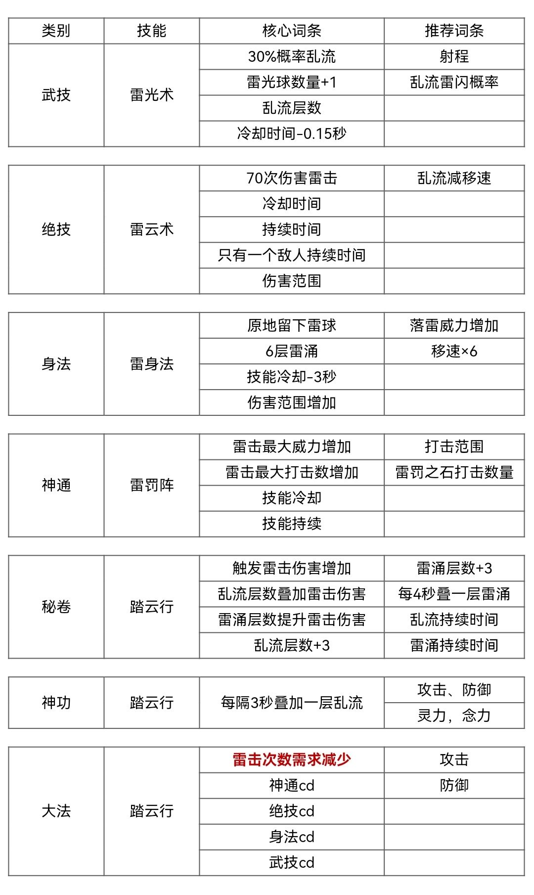 秘卷词条有2个增伤词条,全触发增伤1.729倍。雷云术的雷闪层数增伤词条雷击也吃得到,登仙能叠16层,增伤160%,所以雷云术比别的强很多。