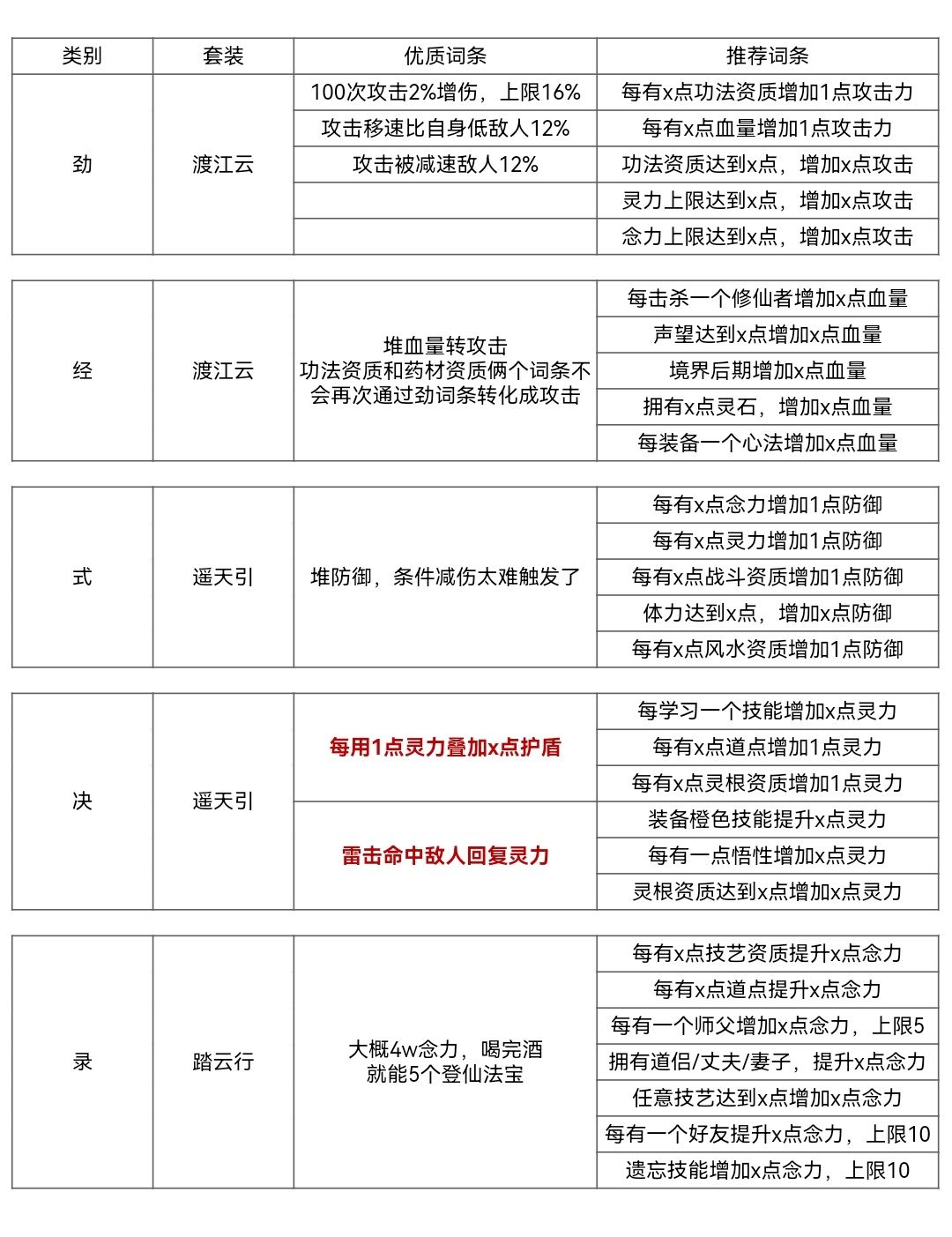 绝技、身法、神通不需要减灵力消耗词条。后期决雷击词条回灵力非常猛,触发雷击一次回1000+灵力,所以姜菱歌1000攻击是常驻的,记得多学点技能配合每学习一个词条加灵力。