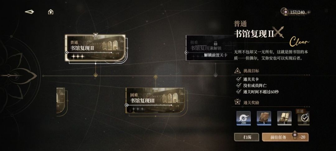 除了主支线所必需的战斗外,预见者们也可根据自身练度与操作能力去进行更进一步的战斗体验。其中有【馆长权限】挑战来提升通关条件,让大家磨炼战斗技术,也有【旧日残影】来将各个重点BOSS加入不同难度来让大家无限感受战BOSS的快感。将这些玩法的奖励拿满,无疑是锦上添花。