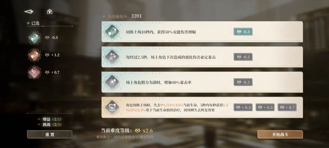 预见者可在进入之前选择5个挑战词条及1个增益词条,根据词条系数变动来确定当前难度值。挑战不同难度值,根据最终挑战层数与角色死亡情况可获取对应积分。积分达到对应值则可获得相应阶段奖励。