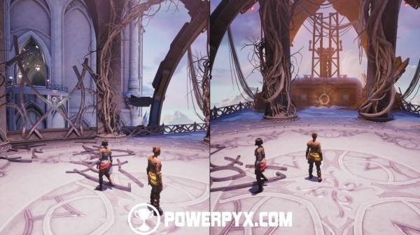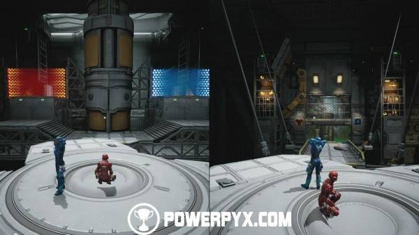其中一名玩家跳下平台,另一名玩家使用拉杆后再跳下平台。