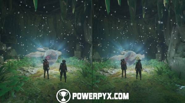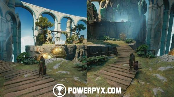 在主线关卡【宝藏之庙】开始后不久,沿着有粉色水晶的小路往前走,此时需要走右侧的路前往神庙才能继续推进主线,先不要推主线,先走左侧的路即可找到本作最后一个支线任务气泡。