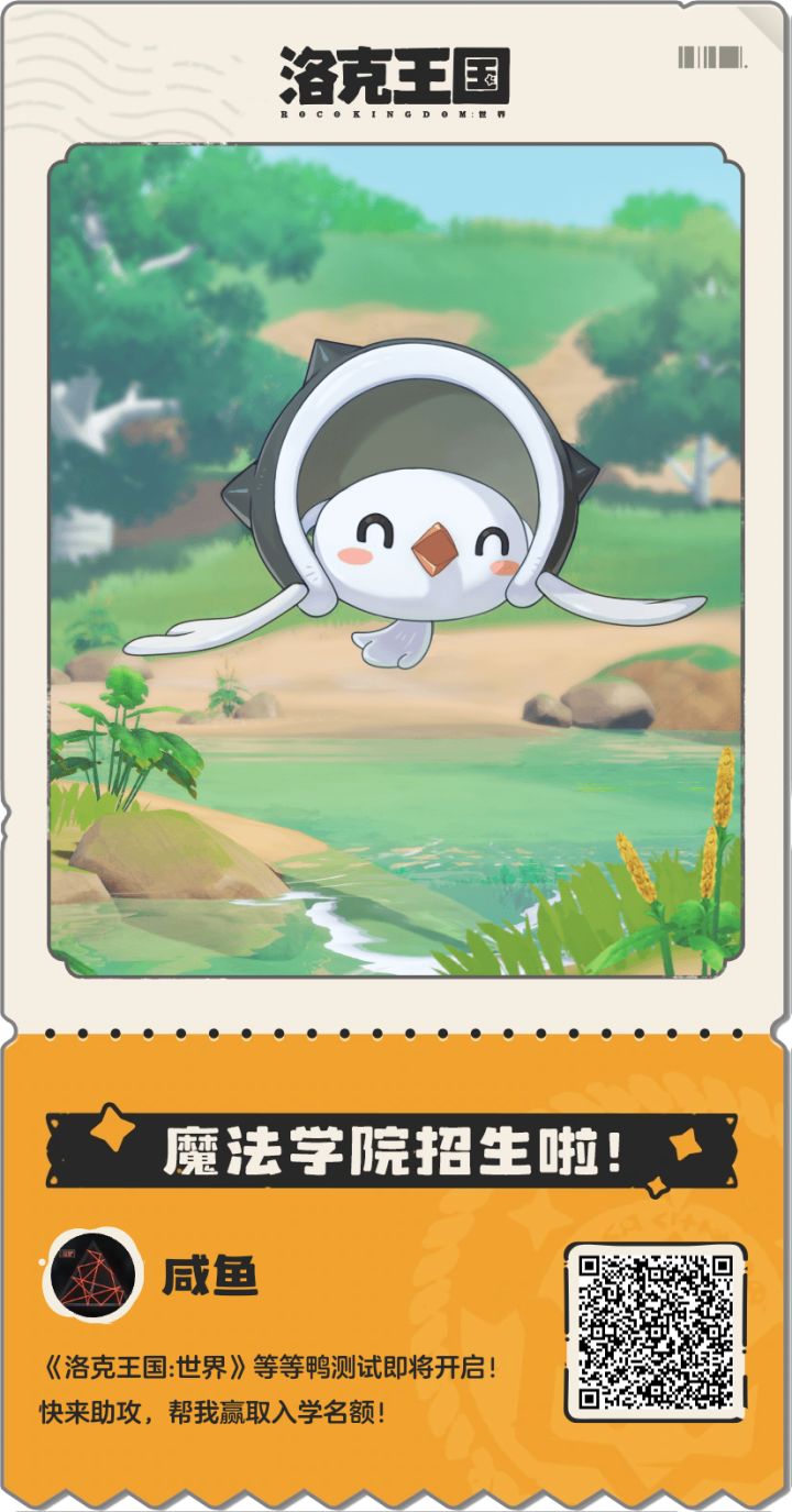 【魔法学院招生啦!】《洛克王国:世界》等等鸭测试即将开启!快来助攻,帮我赢取入学名额!点击链接参与助攻: